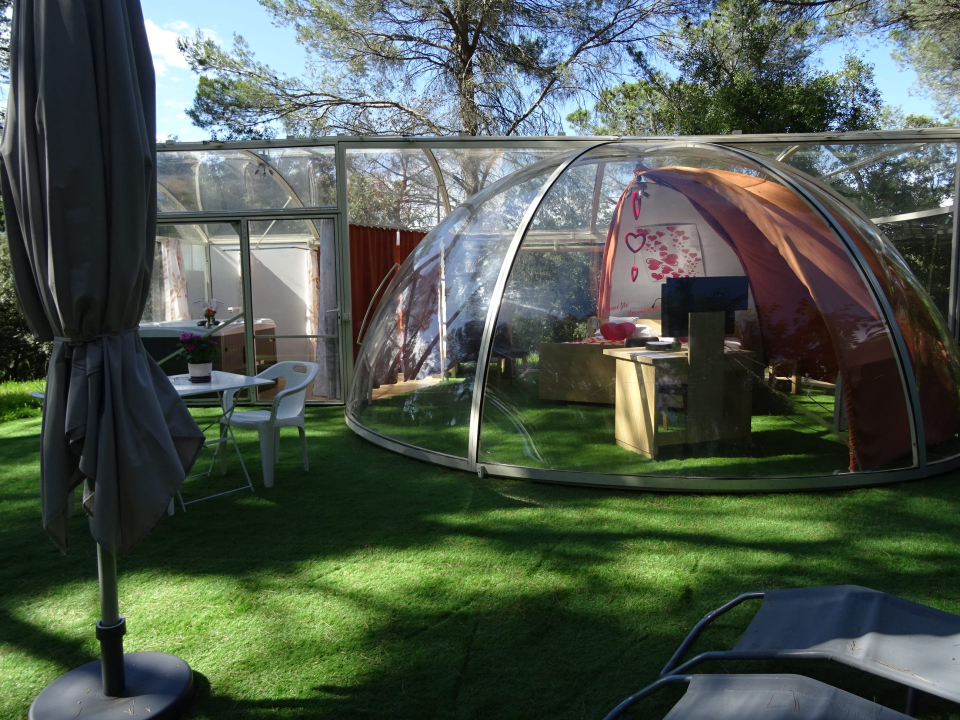 Sur la propriété, se trouvent deux logements insolites, les bulles qui sont considérées comme des maisons légères de loisir.