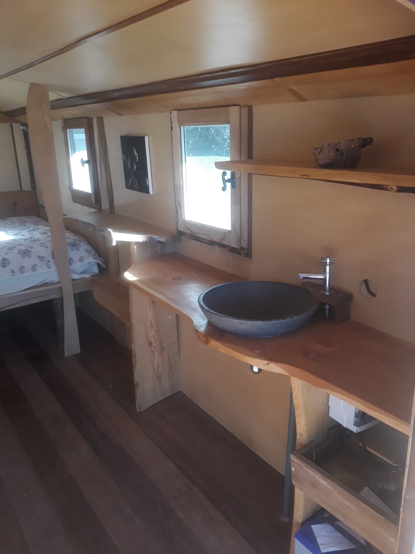 Cette roulotte "Bien-être" a entièrement été créée par son propriétaire qui souhaite à présent la vendre.